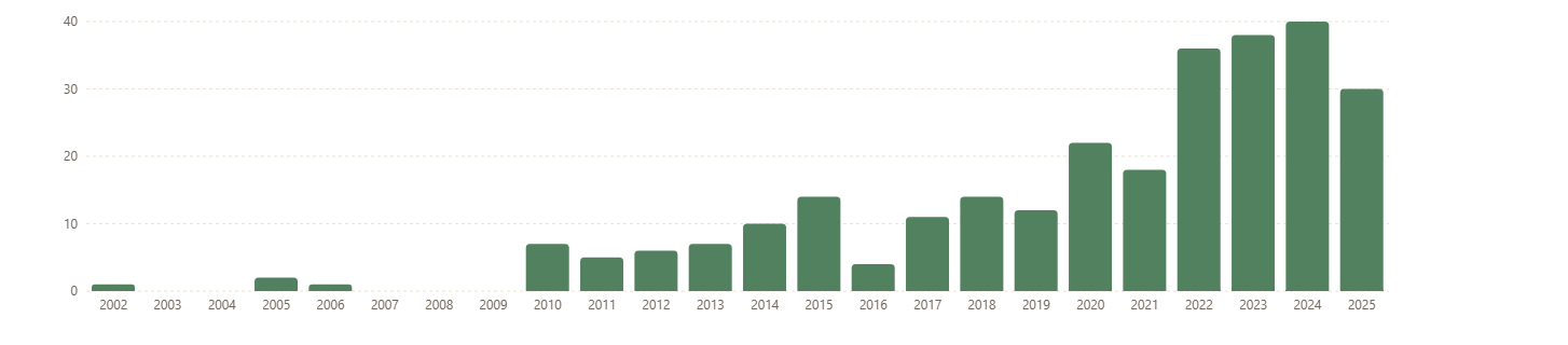A major step toward that goal is the release of the initiative’s website, available today at admindata.taxjustice.net, providing the first systematic database of academic and policy research using administrative tax data worldwide. The database already contains hundreds of papers, covering a wide range of countries, datasets, and empirical strategies. This makes the field visible in a way it has never been before: early-career researchers can quickly see what has been done in which countries using which data; tax administrations can observe how comparable data is used elsewhere; and funders can identify gaps where new investments would have the greatest impact. It is also a foundation on which we can build better standards—whether for documentation, anonymisation, secure access, or cross-institutional collaboration. The website will be filled with such resources as the initiative develops. To illustrate how rapidly this field has grown, the figure below shows the number of papers in the database published over time. The trend is unmistakable and confirms what many of us have seen at recent academic conferences and workshops: administrative data is becoming central to modern tax research, and the growth in output reflects both the increasing availability of data and the expanding demand for rigorous, micro-level evidence.